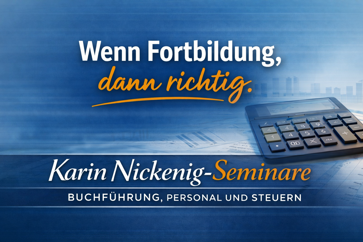 Ich habe bei Frau Nickenig die Seminare Arbeitsrecht kompakt, Lohn und Gehalt 1 & 2, FIBU 1–4, Buchführung, Personal sowie Jahresabschluss als Blockseminare besucht. Ziel war es, meine Kenntnisse in bestimmten Bereichen zu vertiefen und in anderen Bereichen erstmals fundierte Grundlagen aufzubauen. Meine Erwartungen wurden in jeder Hinsicht erfüllt: Die Inhalte waren verständlich aufbereitet, praxisnah und direkt auf meinen Arbeitsalltag übertragbar. Ich war rundum sehr zufrieden – auch das Preis-Leistungs-Verhältnis ist hervorragend. Eine klare Empfehlung – ich würde mich jederzeit wieder für die Seminare entscheiden.